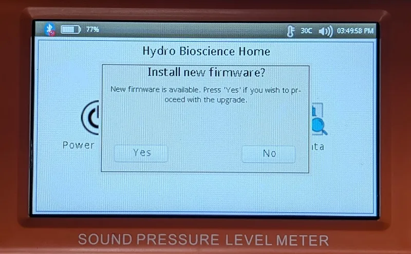 - Unplug the SPL. The device will ask “Install new firmware?” Select Yes. See images below. [3a]